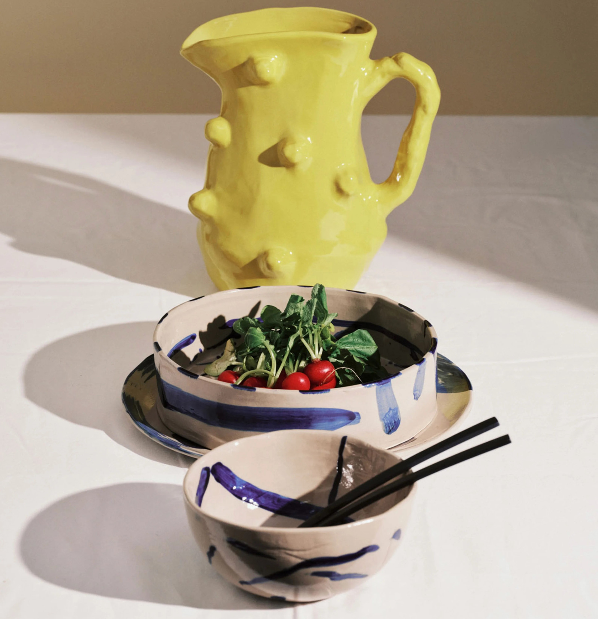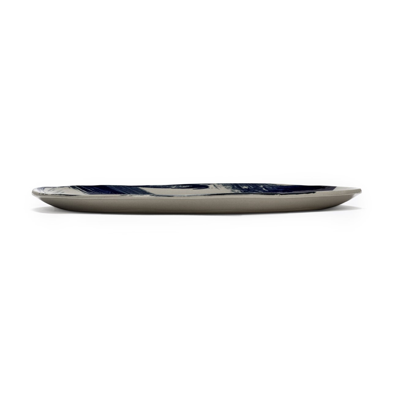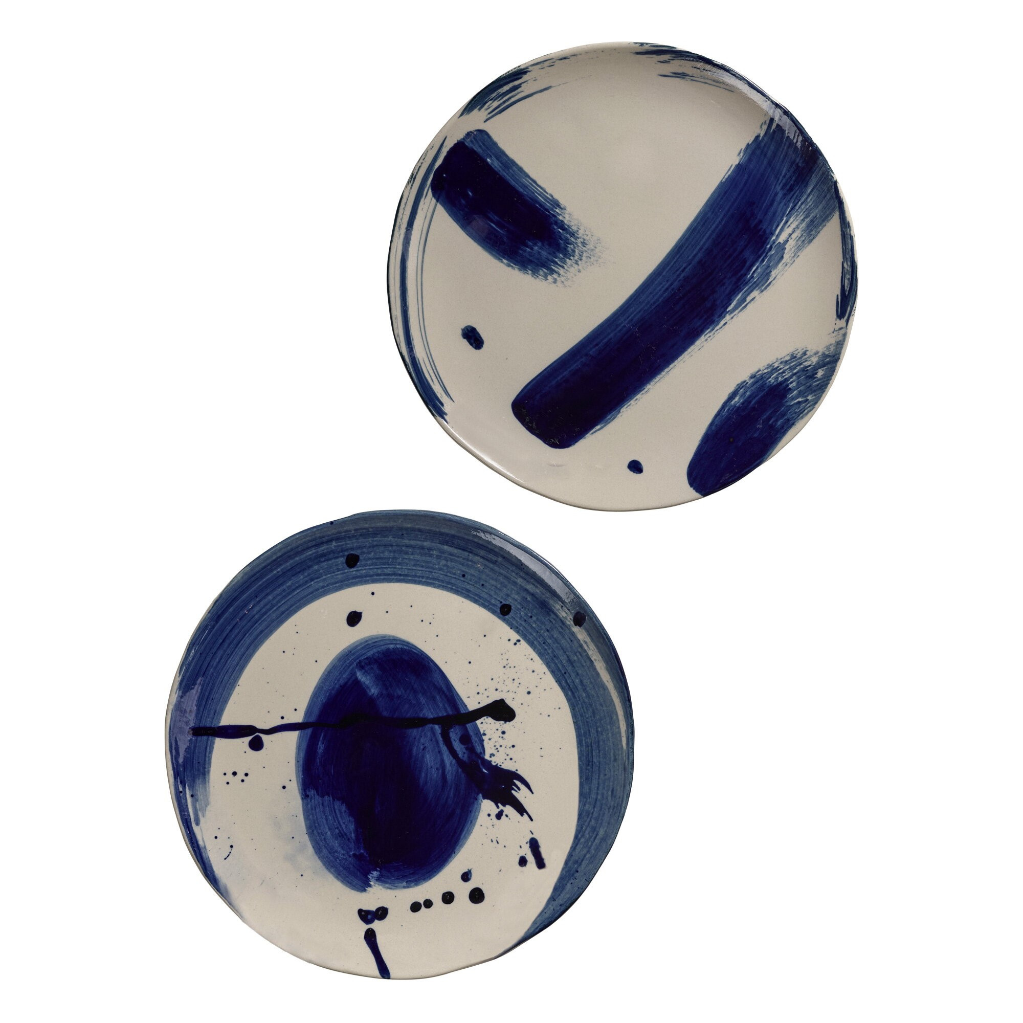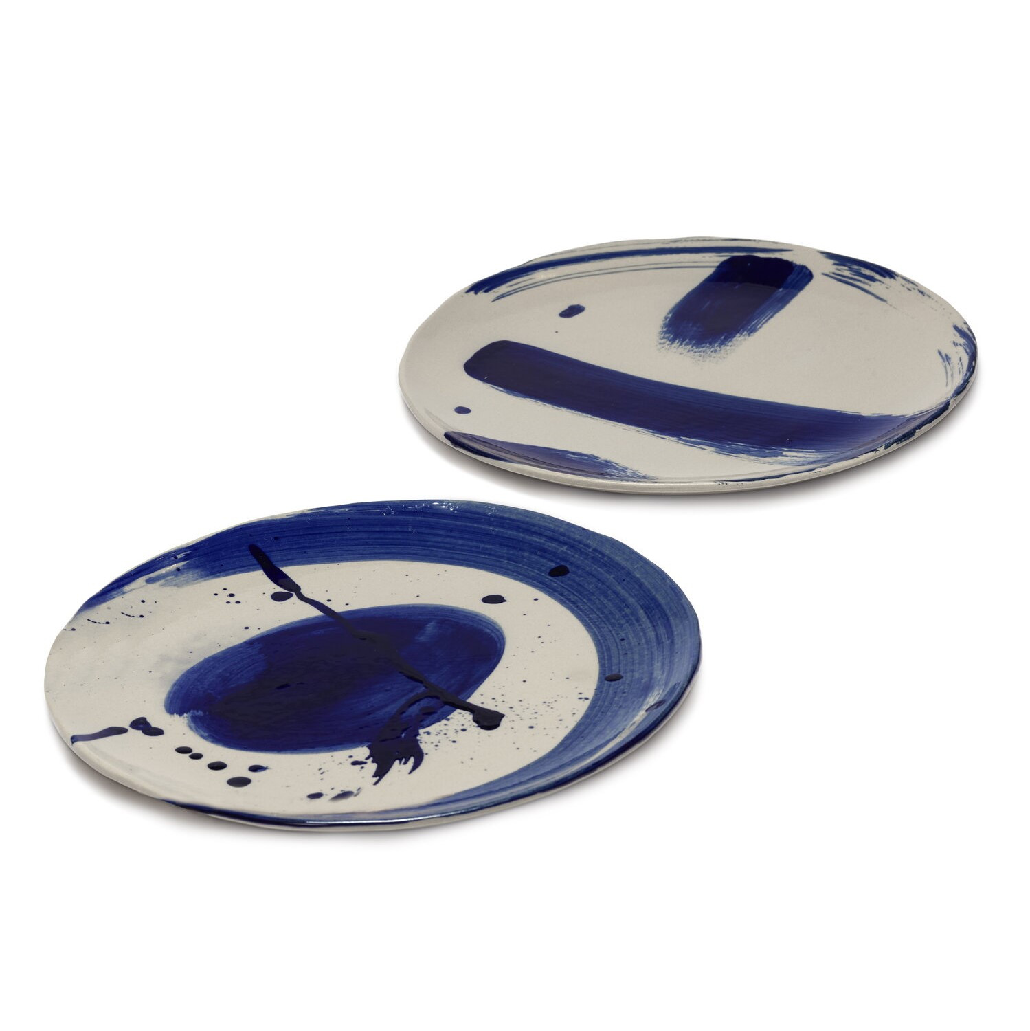Sada dvou talířů z kolekce Sophia, které do každodenního jídla vnášejí umělecký charakter a nadčasovou eleganci. Ručně malované modré tahy štětcem krásně kontrastují s jemným béžovým pozadím a vytvářejí jemnou, ale výraznou dekoraci stolu. Každý kus je vyroben z kvalitní kameniny, díky které zaujme svou odolností a estetikou.