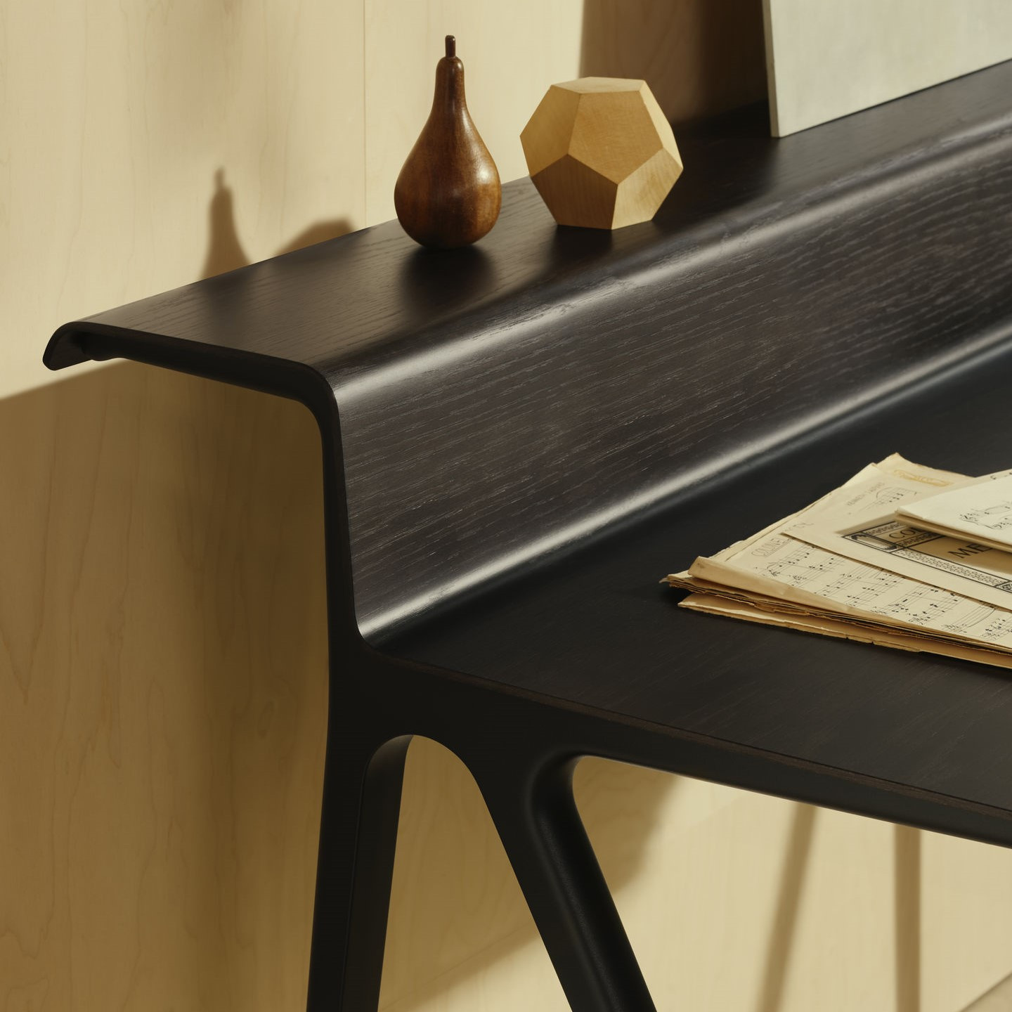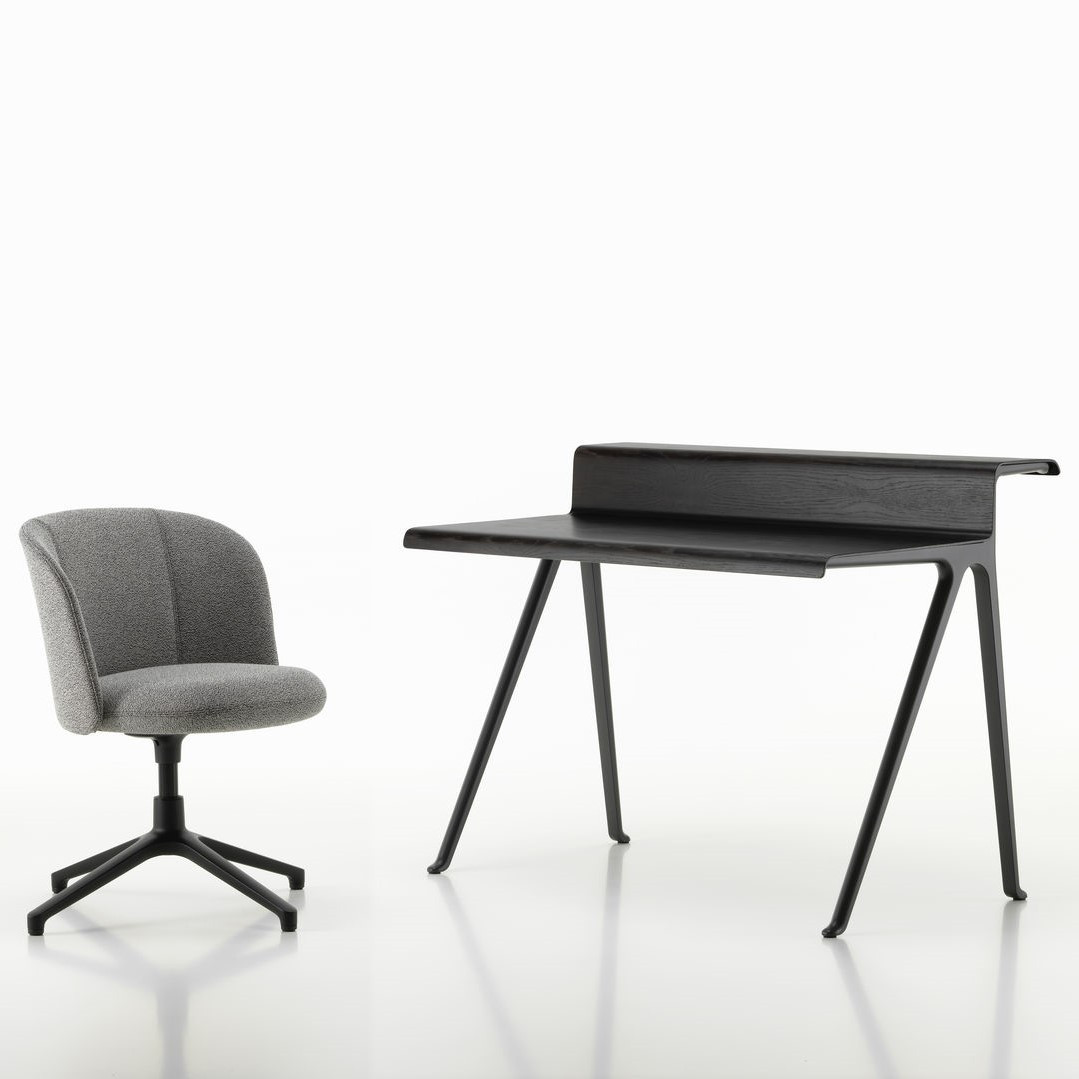 kurýrní přepážka Navrhl ho Ronan Bouroullec v roce 2025 a zaujme svou štíhlou siluetou a jemnou elegancí. Stolní deska zpřírodního nebo tmavého dubu, olejovaná nebo lakovaná Jeho základem jehliníkový základvytvářející harmonický celek. Z boku silueta připomíná patkové písmeno, odtud název Courier. Psací stůl nabízí pohodlný prostor pro notebook, dokumenty a knihy a vnáší do interiéru lehkost a rovnováhu.