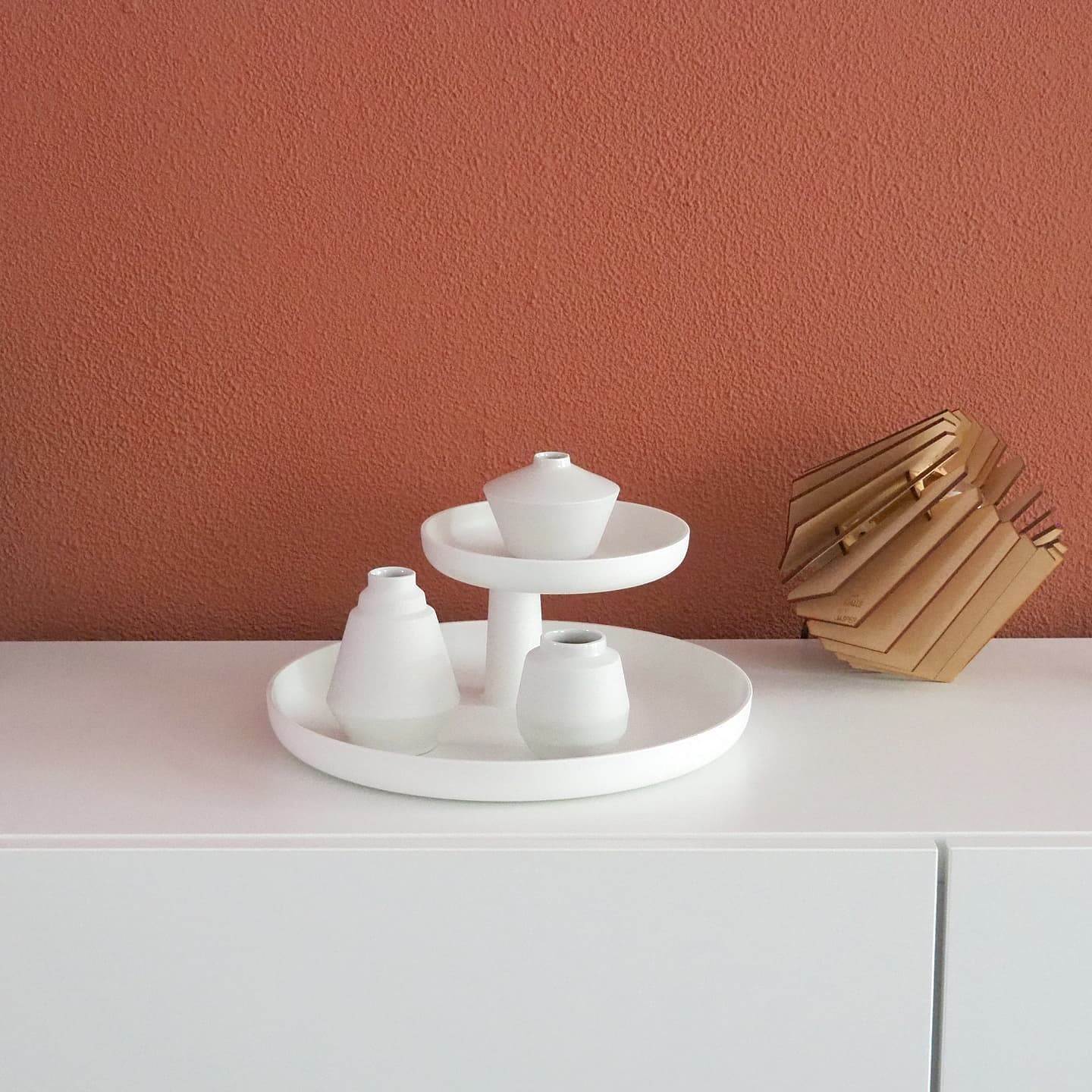 Otočný podnos je moderní interpretací klasického etageru odJaspera Morrisona pro značkuVitra. Díky svému elegantnímu, minimalistickému tvarua jemnými barvami se podnos skvěle hodí do každého stylu interiéru – odobývacího pokoje, ukoupelnyachodba, pofficenebodětský pokoj. Vyrobeno ztexturního ABS plastu,Otočný zásobník Uchvátí svou funkčností:horní úroveň se otáčíusnadňuje přístup k uloženým položkám. Lehký, praktický a odolnýDá se použít iobčas venkuv chráněných prostorách.