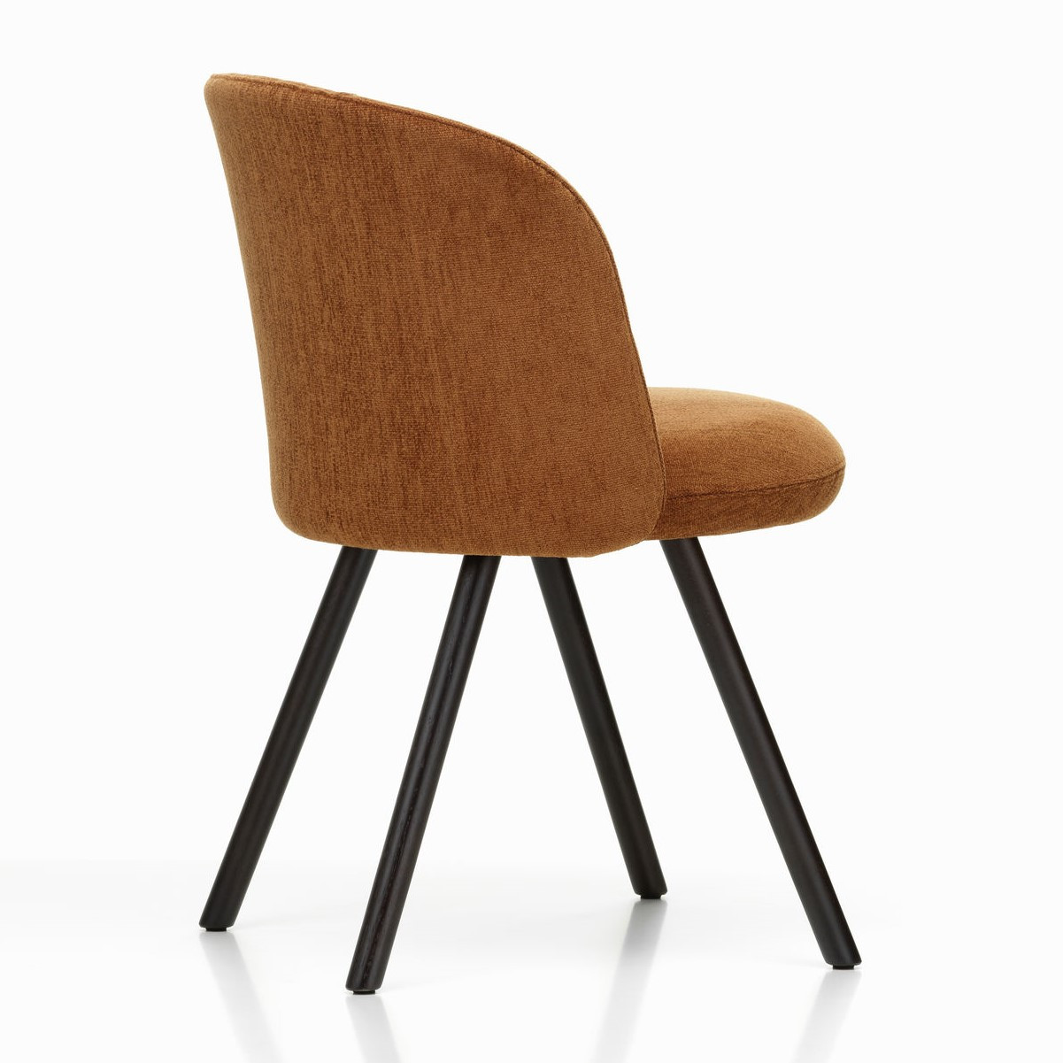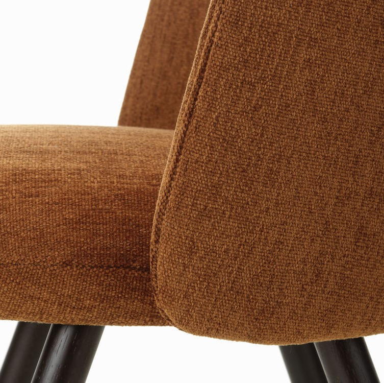 Židle byla navržena s ohledem na odolnost a udržitelnost – byly použity recyklované materiály a konstrukce umožňující snadnou výměnu prvků. Odnímatelné čalounění Je k dispozici v široké škále látek a kůží (včetně Iroko), což umožňuje modelu dokonale ladit s charakterem interiéru.
