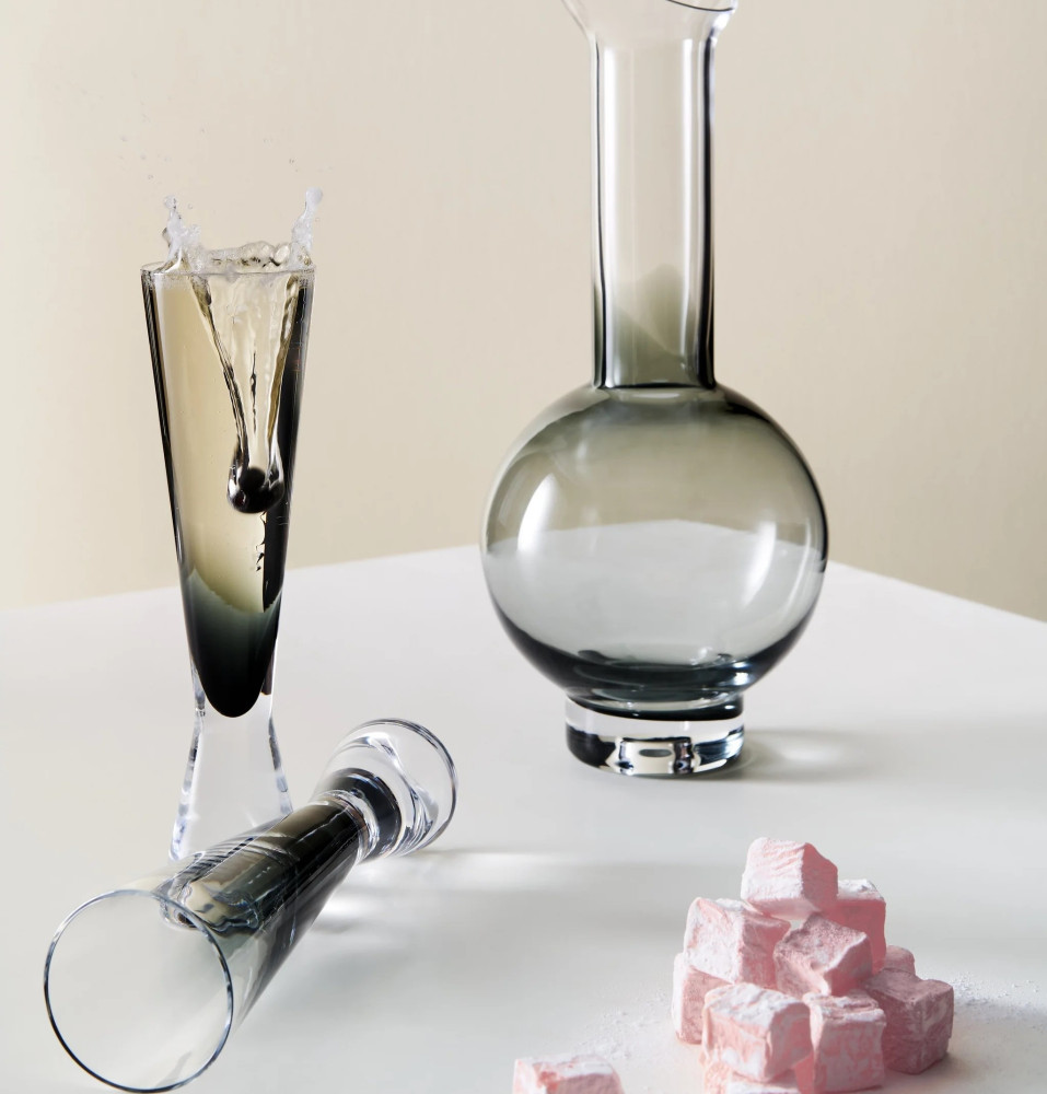 elegantní brýle šampaňského černého skla ze kolekce nádrže renomované značky Tom Dixon.