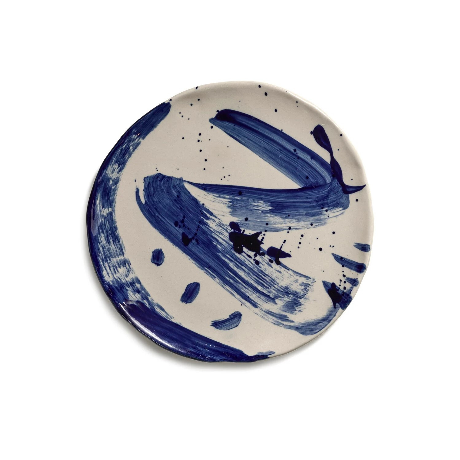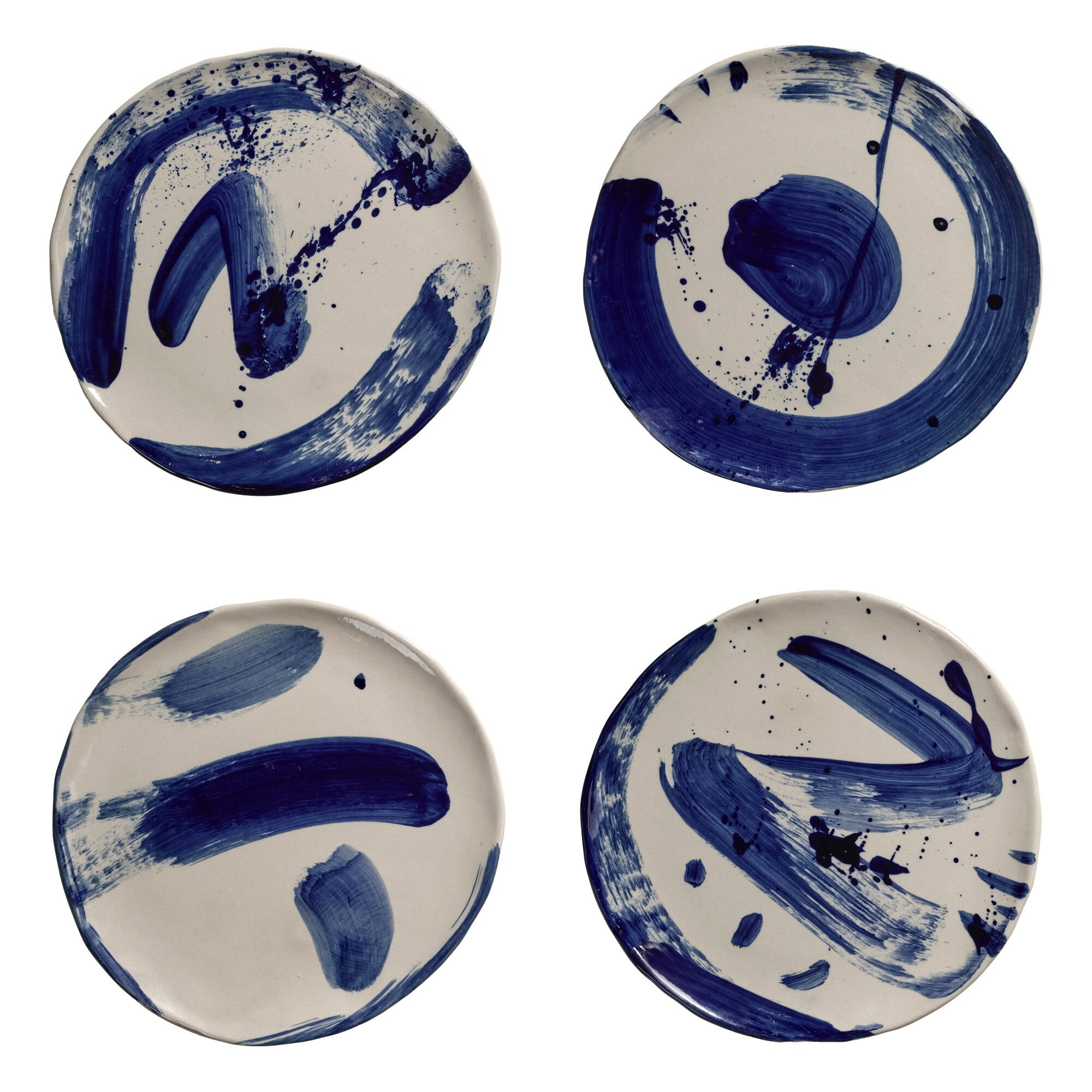Sada 4 snídaňových talířů z kolekce Sophia, které vnášejí do každodenního jídla umělecký charakter a nadčasovou eleganci. Ručně malované modré tahy štětcem krásně kontrastují s jemným béžovým pozadím a vytvářejí jemnou, ale výraznou dekoraci stolu. Každý kus je vyroben z kvalitní kameniny, díky které zaujme svou odolností a estetikou.