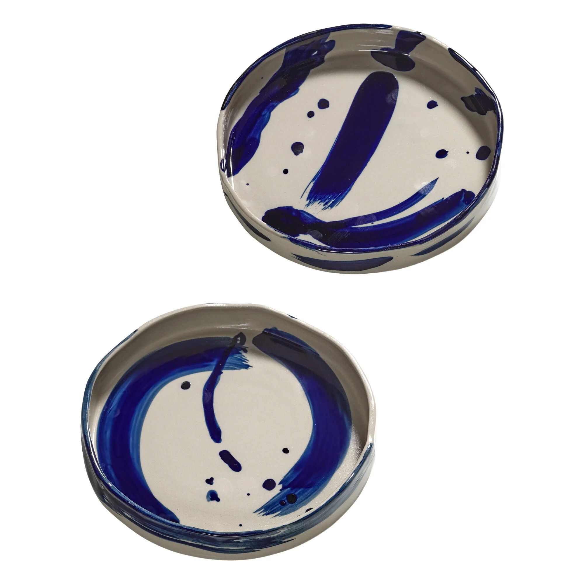 Sada dvou těstovinových talířů z kolekce Sophia od belgické značky Serax. Ručně malované modré tahy štětcem krásně kontrastují s jemným béžovým pozadím a vytvářejí jemnou, ale výraznou dekoraci stolu. Každý kus je vyroben z kvalitní kameniny, díky které zaujme svou odolností a estetikou.