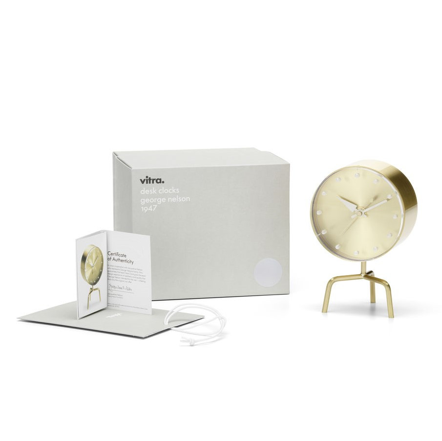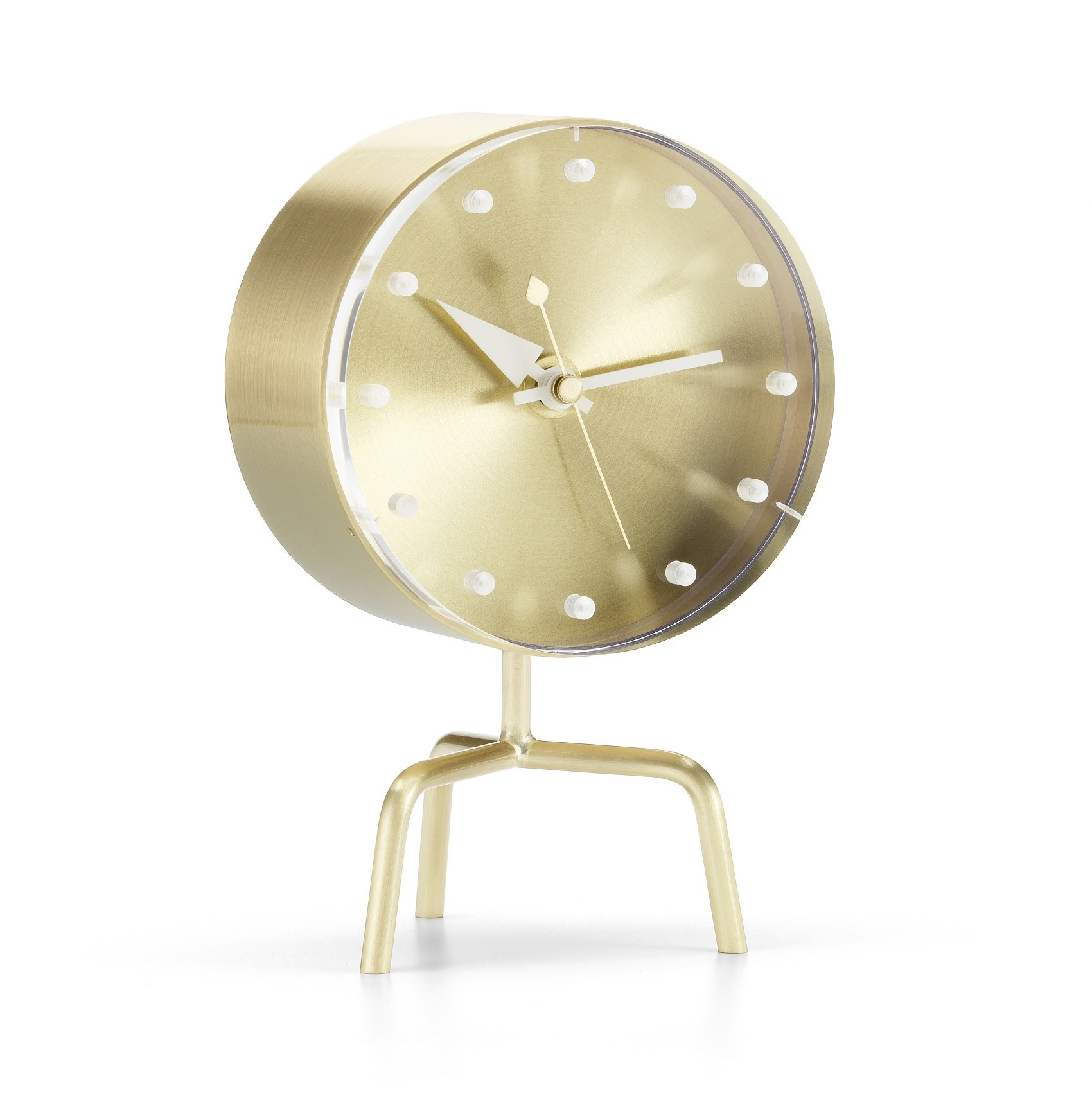 Stolní hodiny Tripod Vitra majínadčasový designpro váš interiér, vytvořilGeorge NelsonIkona modernistického designu. Stativ ukazuje, že ke čtení času nepotřebujete číslice - stačí přesně navržený směra harmonická forma. Vyrobeno zmosazi, akrylu a masivního dřeva Hodiny jsou takéfunkční quartz mechanikouaefektní dekorace. 1,5V baterie Vy zajišťují spolehlivost atenký design Skvěle se hodí na stůl, komodu nebo do studia.