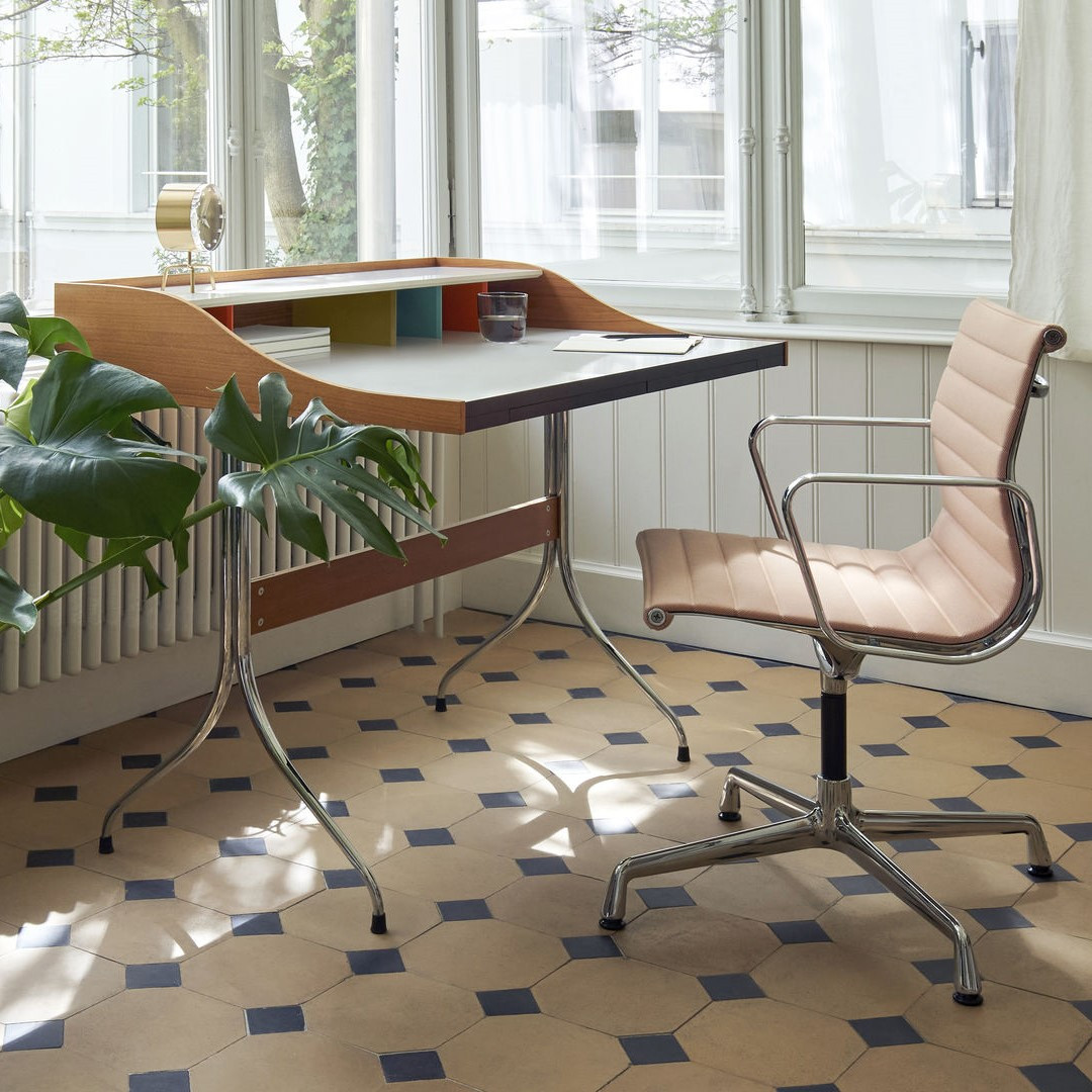 George Nelson byl jedním z předních amerických designérů 20. století, narodil se v roce 1908. Architekt, designér a teoretik designu sehrál klíčovou roli při utváření moderního průmyslového designu. Řadu let spolupracoval s Hermanem Millerem, kde působil jako ředitel designu. Právě tam přispěl k vytvoření designových ikon, jako jsou nástěnné hodiny Ball Clock, psací stůl Home Desk a série Storage Wall. Ve své práci spojil funkčnost s estetikou a vytvořil tak každodenní předměty s jedinečným charakterem. Nelson byl také autorem mnoha textů o designu, propagujících myšlenku designu jako nástroje ke zlepšení kvality života.