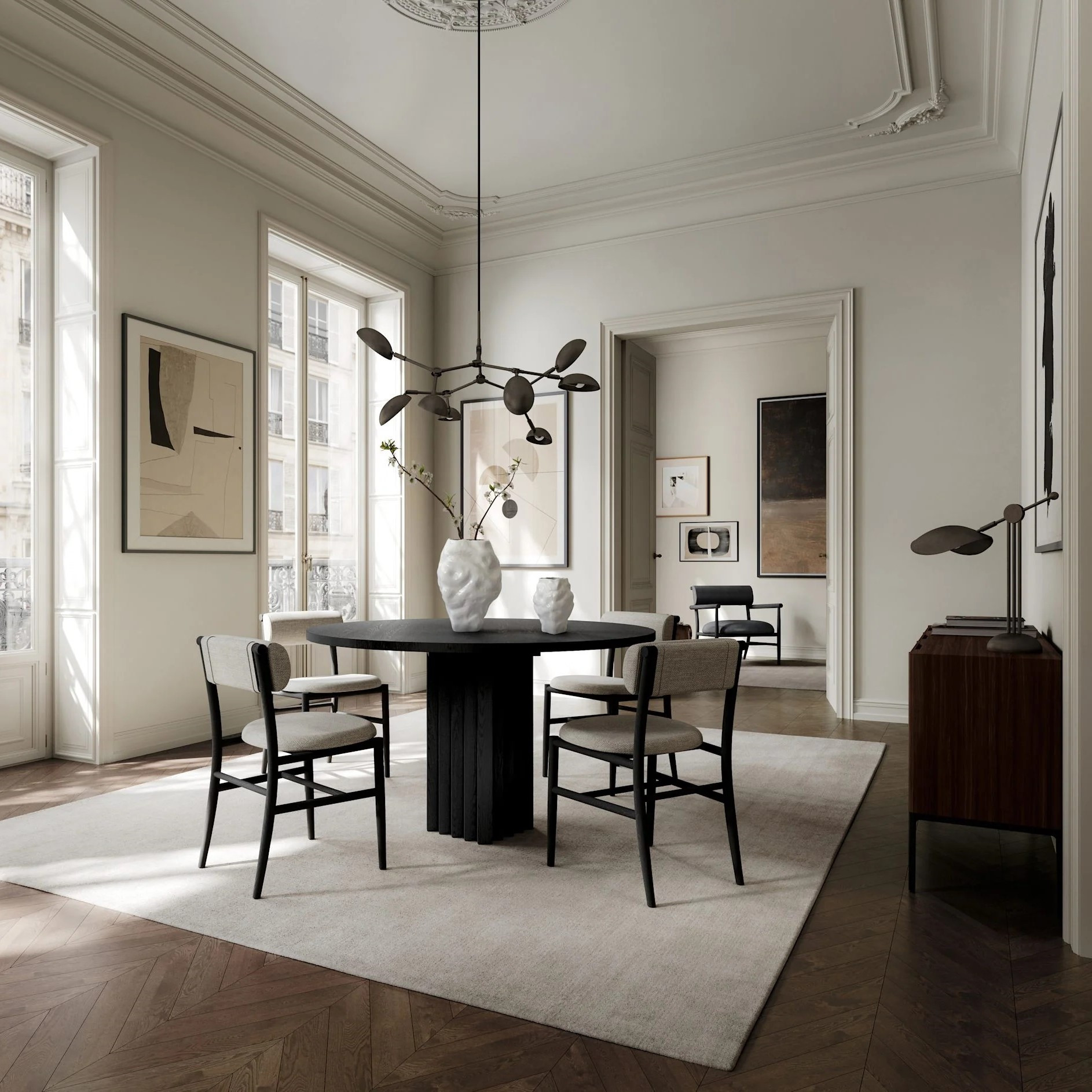 DánštinaTabulka oblouku Značky101 Copenhagen Jde o spojení sochařské elegance a minimalistické moderny. Inspirován stylem Art Deco potěší charakteristickými kroky a oblouky, které dodávají hloubku a jemnou hru stínů. Deska stolu je vyrobena z masivního amerického dubu v barvěCoffee Black Oak Vyzařuje teplo a ušlechtilou texturu dřeva, která kontrastuje s architektonickou Ton základnou vyrobenou z litého sklolaminátu v odpovídajícím kávovém odstínu.