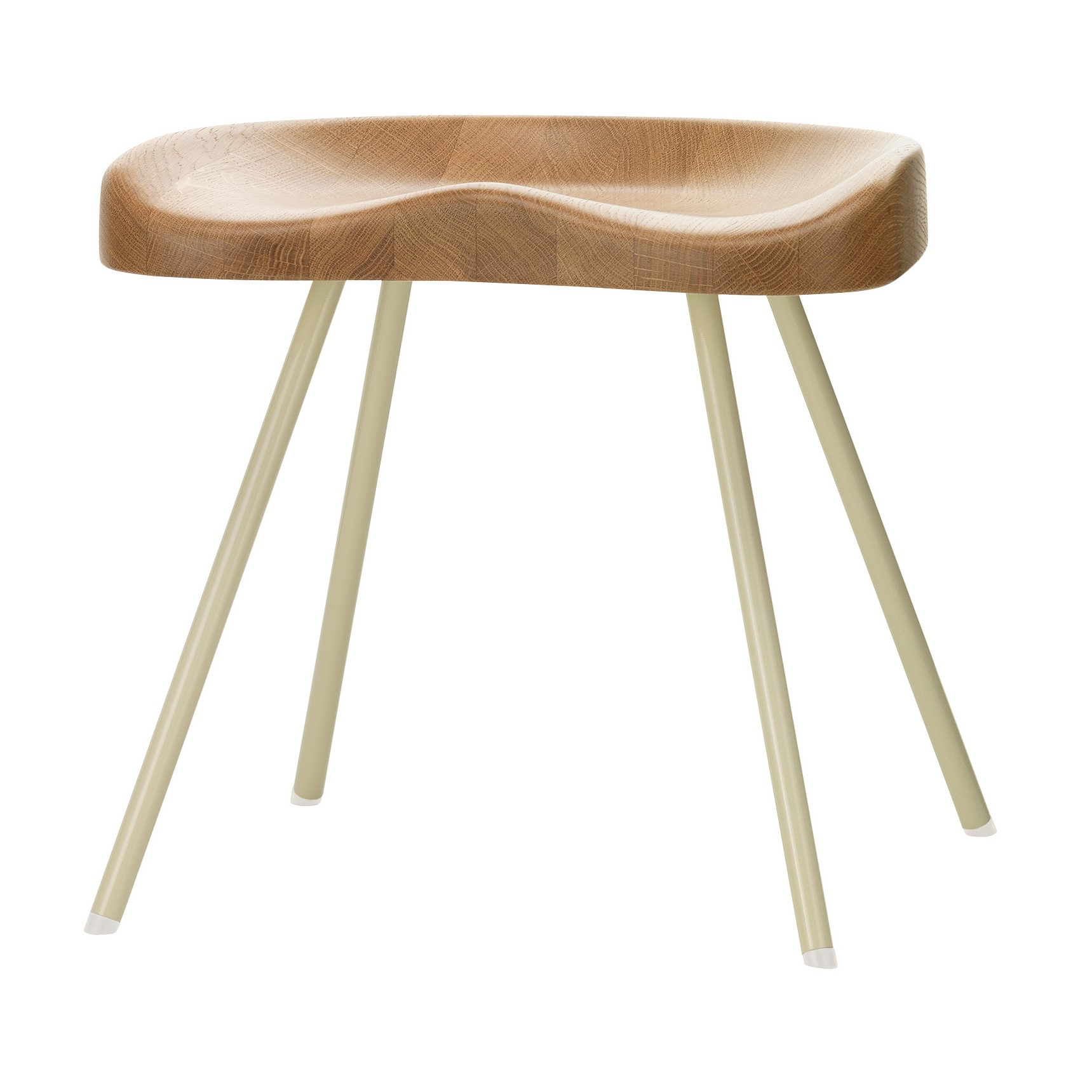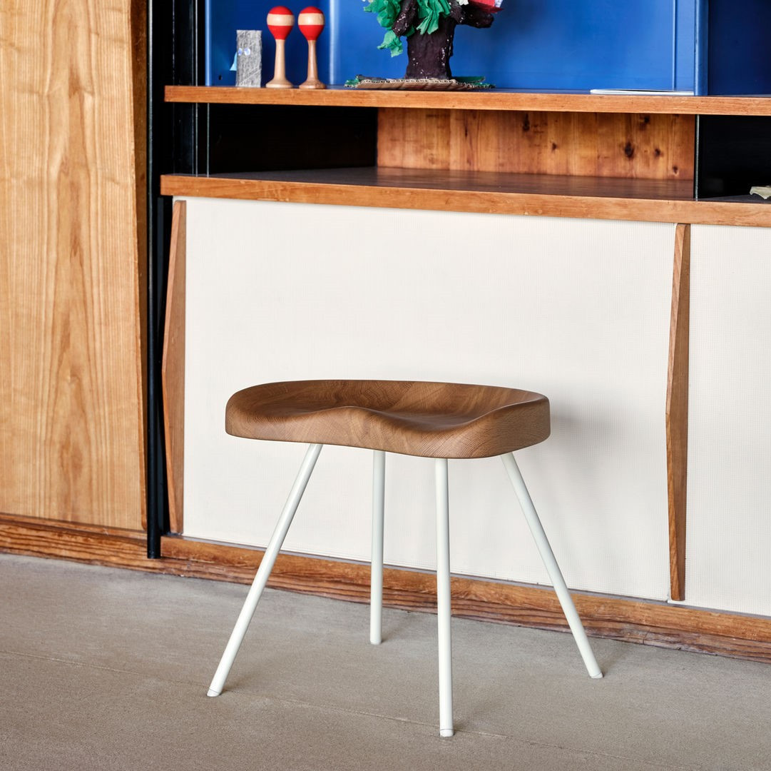 Tabouret č. 307 z Vitraje ikonická stolička navrženáJeanem Prouvé z roku 1951který kombinuje nadčasový design s funkčností. Charakteristický sedák v podobětraktorového sedlaVyrobeno z masivního dubu poskytuje výjimečný komfort a zdůrazňuje řemeslný charakter nábytku. Harmonický kontrast vytváří stabilní základna ztrubkové oceli s práškovým nástřikem, k dispozici v odstínuProuvé Blanc Colombenebosytě černá