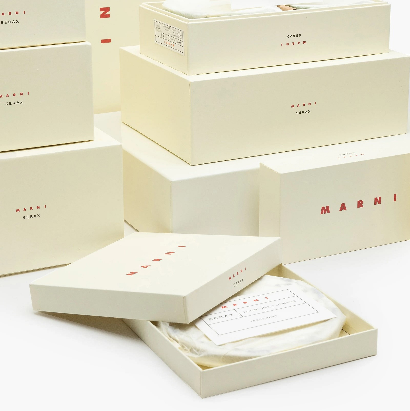 Marni je italský módní dům založený v roce 1994 Consuelo Castiglioni, známý pro své odvážné návrhy spojující moderní estetiku s uměleckým charakterem. Značka je známá svými nekonvenčními kolekcemi oblečení, doplňků a interiérových doplňků, které se vyznačují barevností, geometrickými vzory a kreativním přístupem k formě. Spolupráce Marni s renomovanými výrobci designu, jako je Serax, vám umožňuje vytvářet jedinečné limitované kolekce dekorací a keramiky, které kombinují módu s funkčním designem.