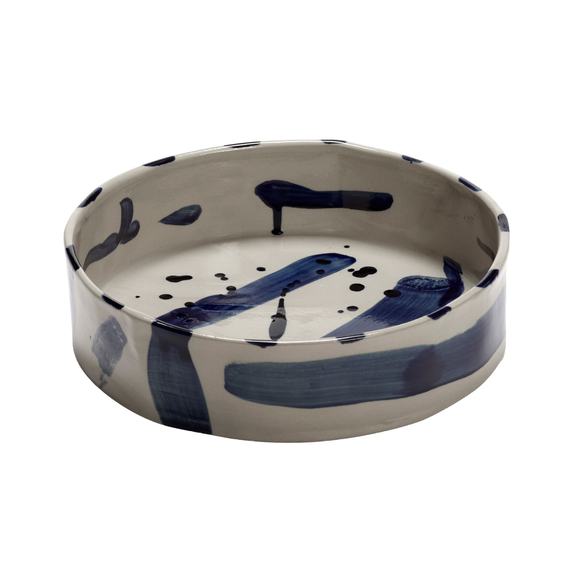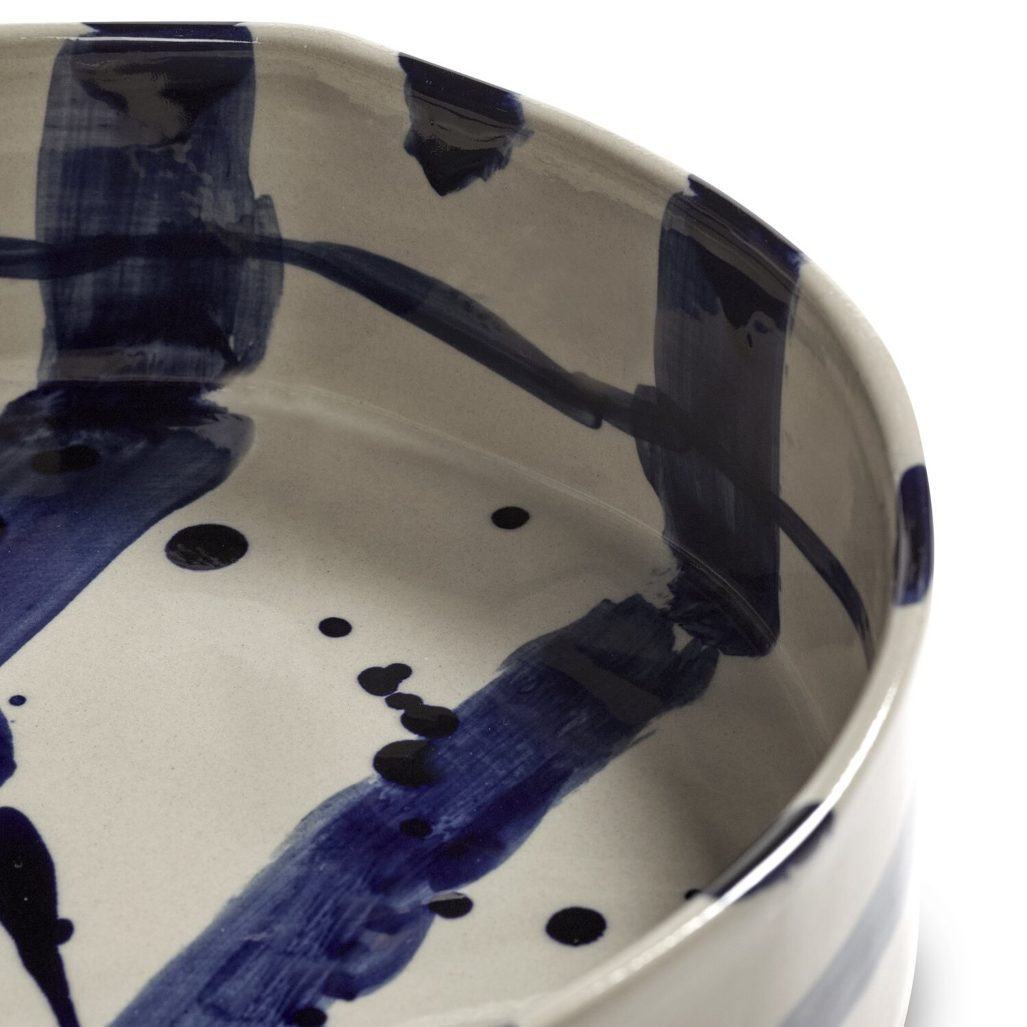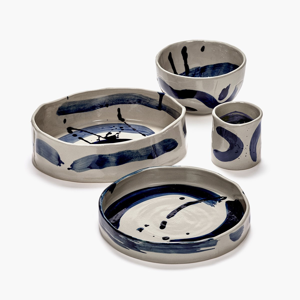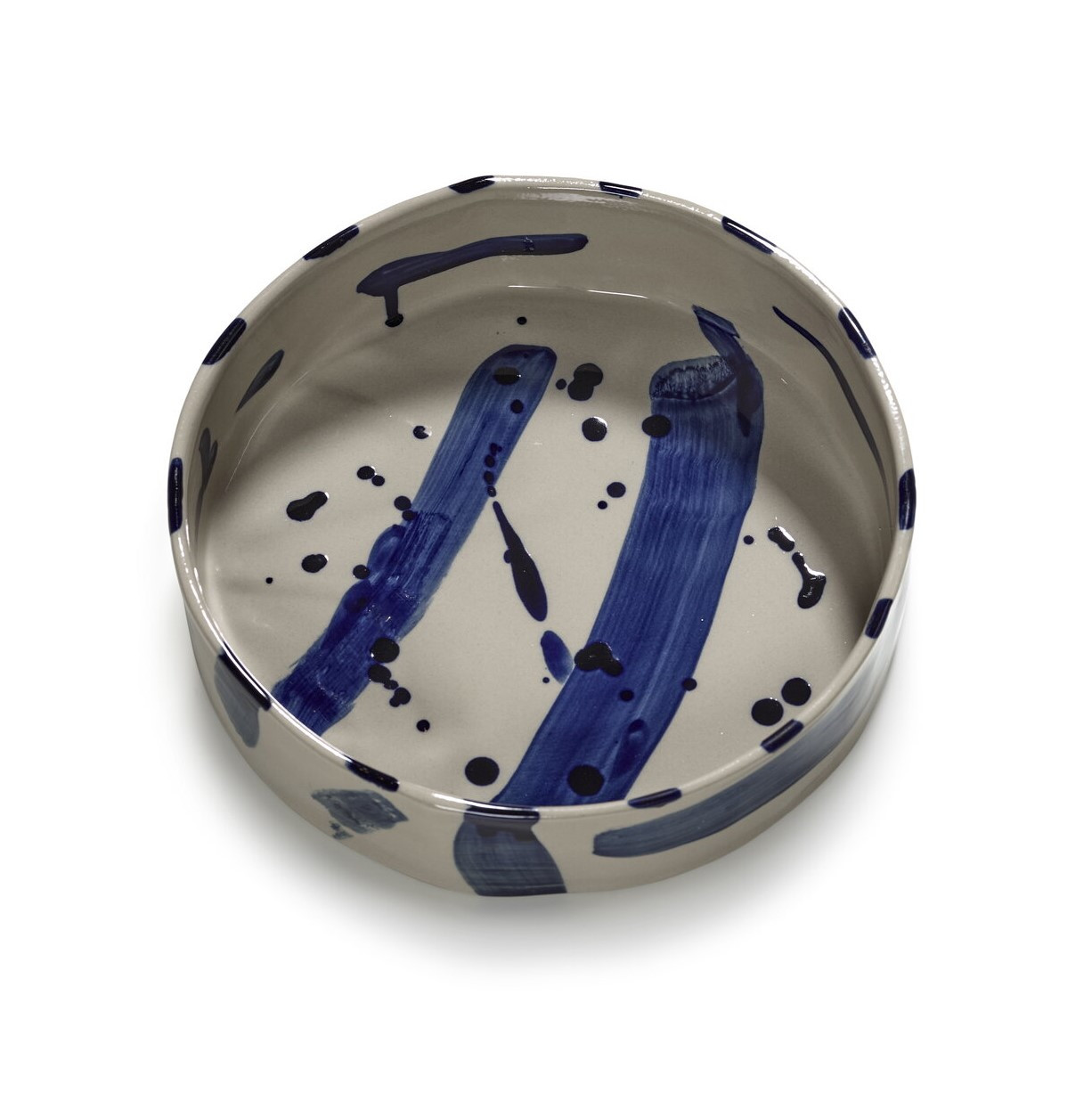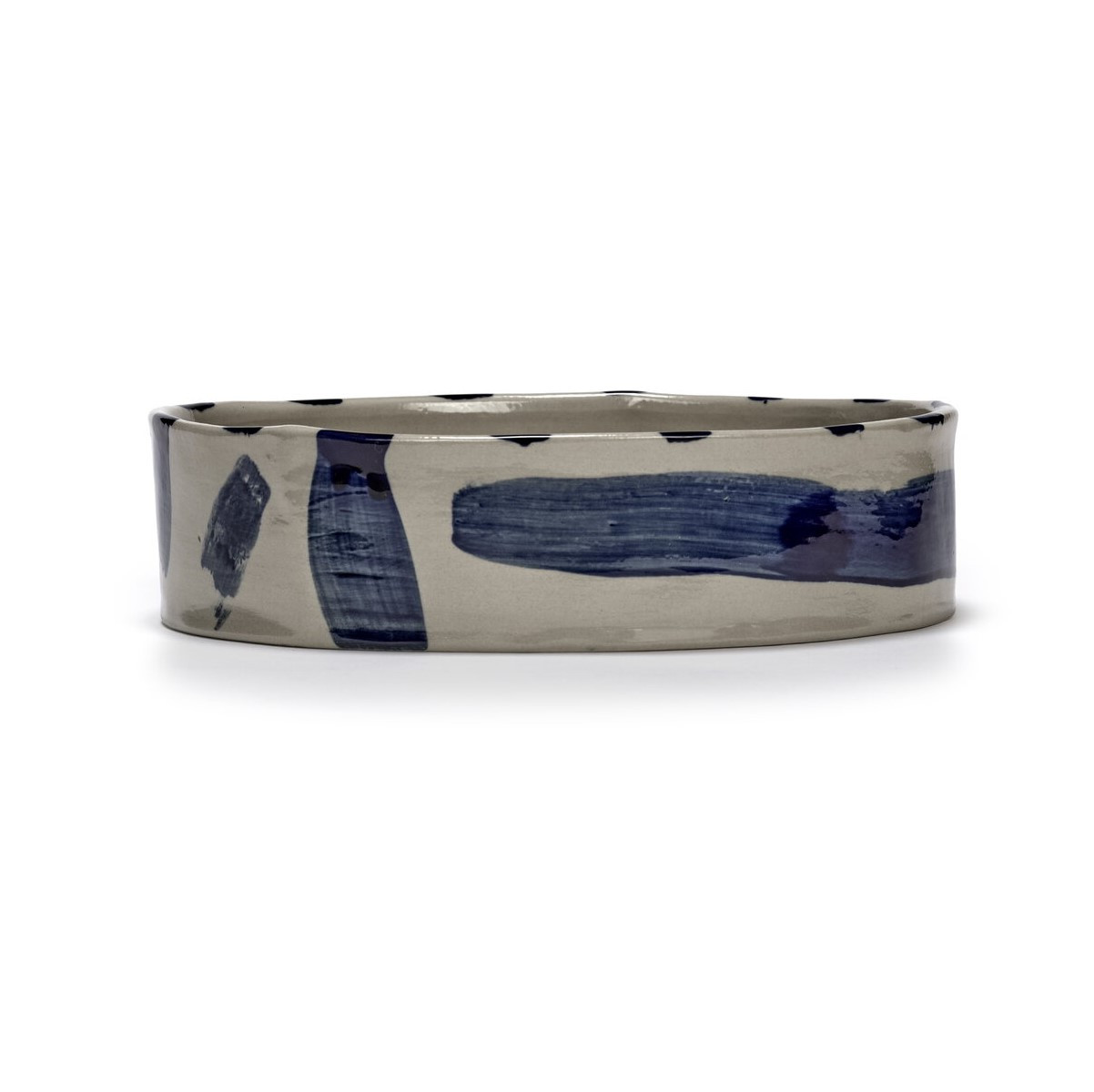 Osobité, ručně malované modré tahy štětcem na béžovém pozadí dělají každý talíř jedinečným. Jemné rozdíly a nepravidelnosti vyplývající z ruční práce zdůrazňují její jedinečný charakter a řemeslnou kvalitu.