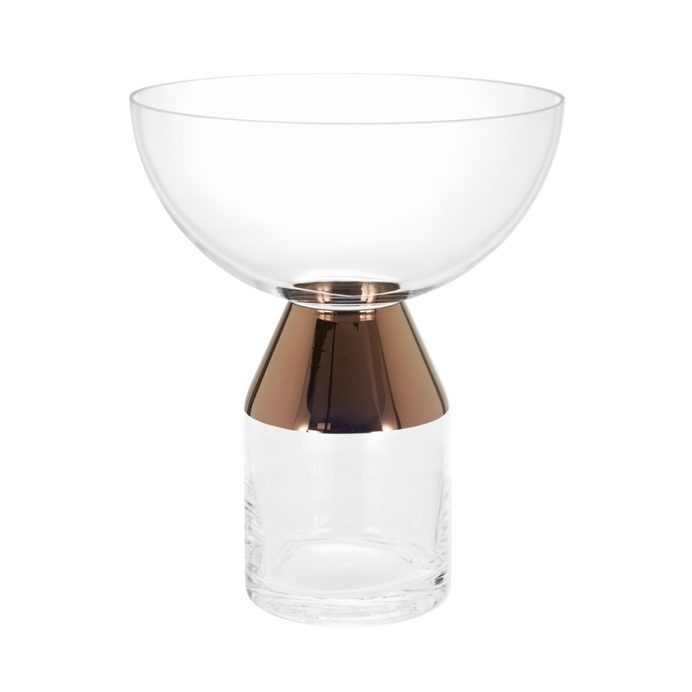 tanková váza renomované značky Tom Dixon je luxusní dekorativní váza vyrobená z rukou -inflatovatelného skla, zakončená elegantními detaily mědi. Tento jedinečný prvek designu interiéru kombinuje moderní design s nejvyšší kvalitou zpracování, protože je to praktická jídla pro květiny a umělecký přízvuk dekoru. Charakteristická forma vázy je inspirována geometrií a minimalismem, díky čemuž se dokonale mísí s moderními luxusními uspořádáními. Kovová mědi poskytuje celou teplo a šlechtu a zároveň upoutá oko a vytváří sofistikovanou dekoraci jakéhokoli stolu, komody nebo konzoly.