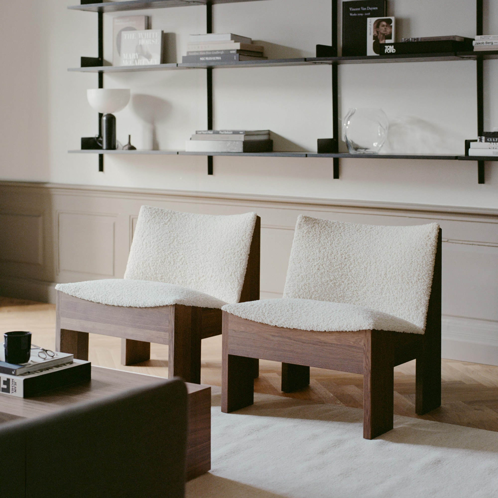 Terónový křeslo z dánské značky New Works je kvintesence skandinávského designu v moderní verzi - minimalistický a zároveň extrémně expresivní. Toto pohodlné křeslo kombinuje kontrasty: tvrdost pevného dubu a měkkost čalouněných povrchů, síly a jemnosti, geometrie a organických tvarů. Konstrukce je založena na tradičním kloubu Mortise a Trónu (Teron a Socket) a vytváří sochařský rám, který, stejně jako štít, obklopuje měkké a flexibilní sedadlo.