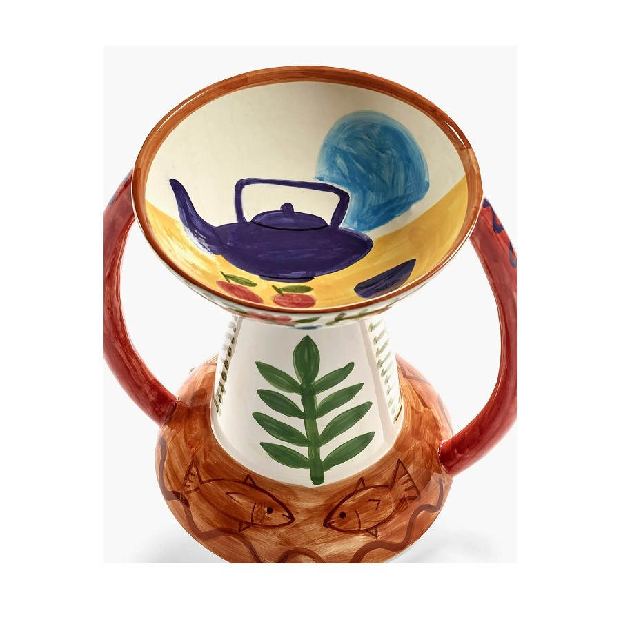 Objevtejedinečnou keramickou vázu Charapita z kolekceSantiago De Borja vytvořila talentovaná umělkyněShirley Villavicencio Pizango. Tatoručně malovaná váza Potěšíživými barvami a výraznými tahy štětcemkteré přenesou teplo a energii amazonské přírody do vašeho interiéru. Každá strana vázy skrývá jiný, dynamický motivDíky czEmu to vypadá pokaždé jinak.