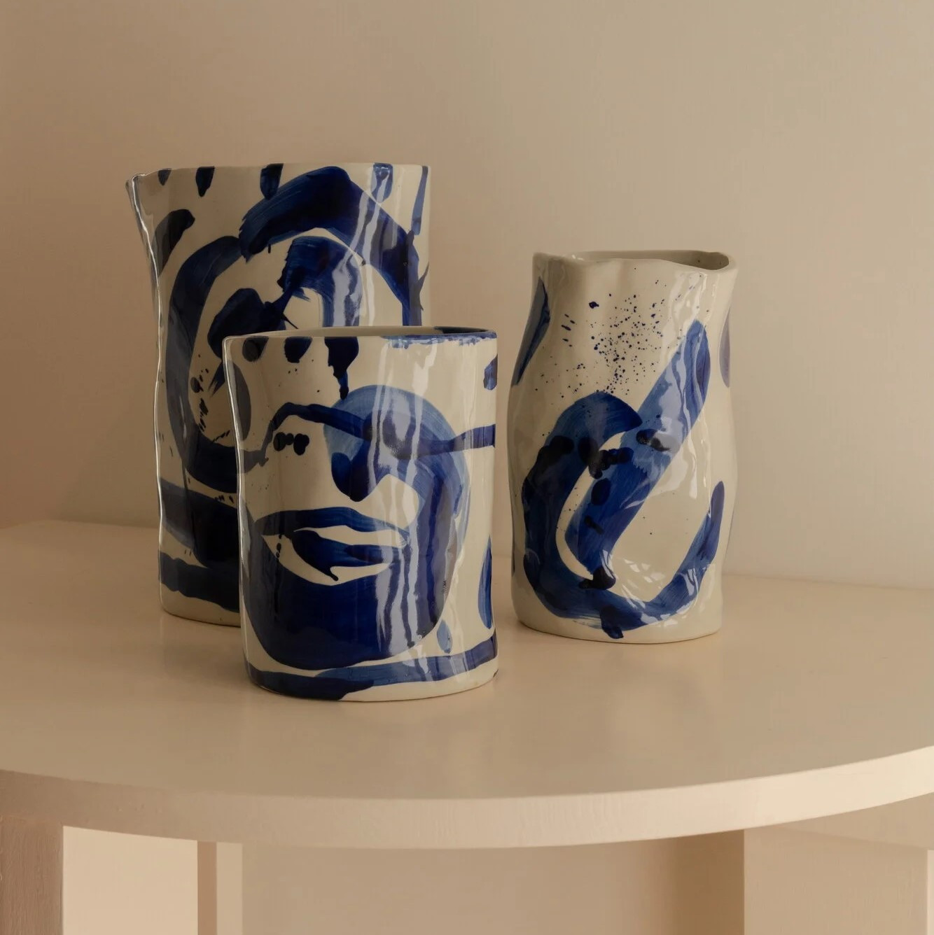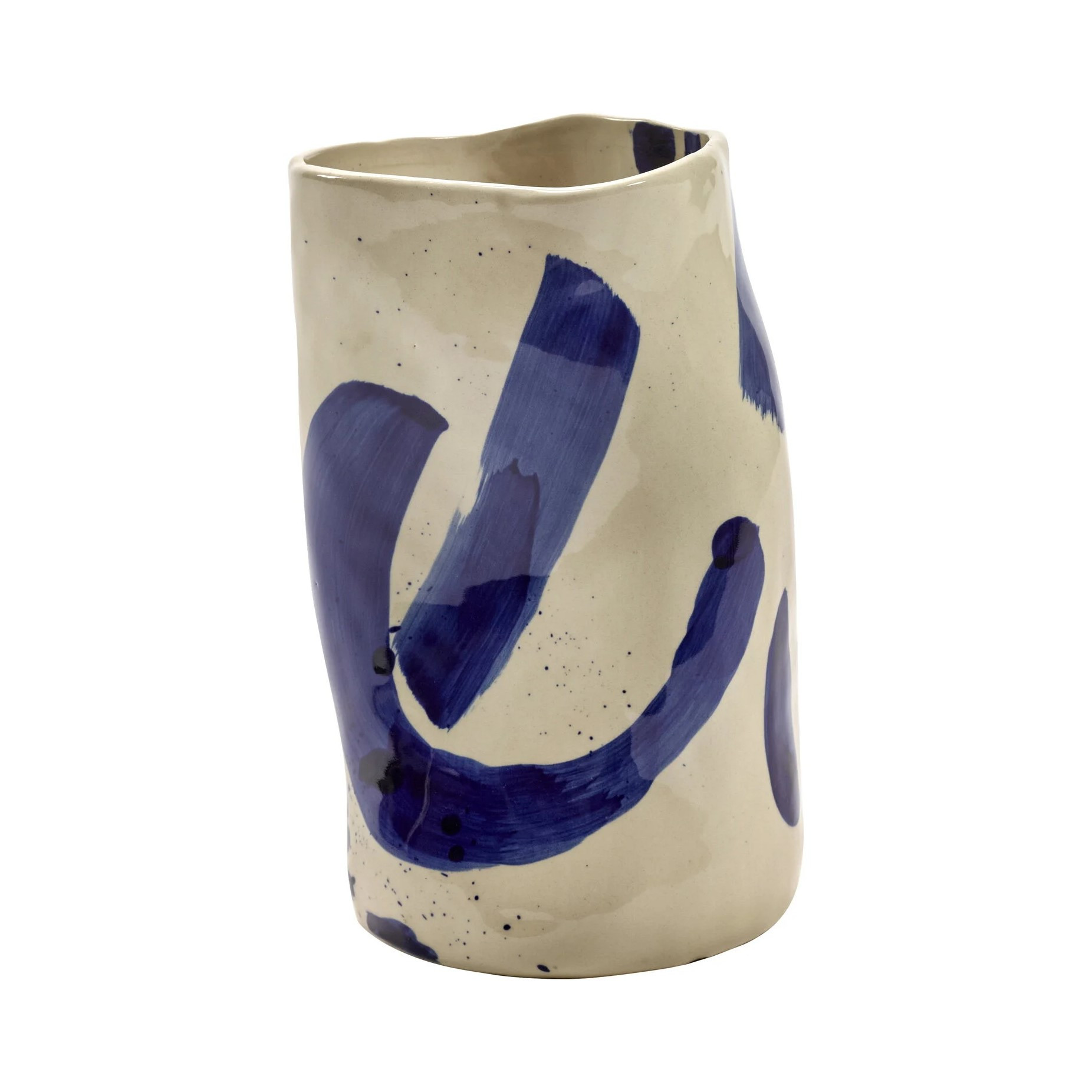 Ručně vyrobená váza Sophia z Serax přitahuje pozornost svou volnou formou a uměleckým charakterem. Design Marie Michielssen se vyznačuje intuitivním tvarem a ruční malbou, která dává každému kusu jedinečný, téměř kaligrafický výraz. Jemná asymetrie a přirozené nedokonalosti zdůrazňují autenticitu řemesla a dělají z něj nejen funkční předmět, ale také dekorativní sochu.