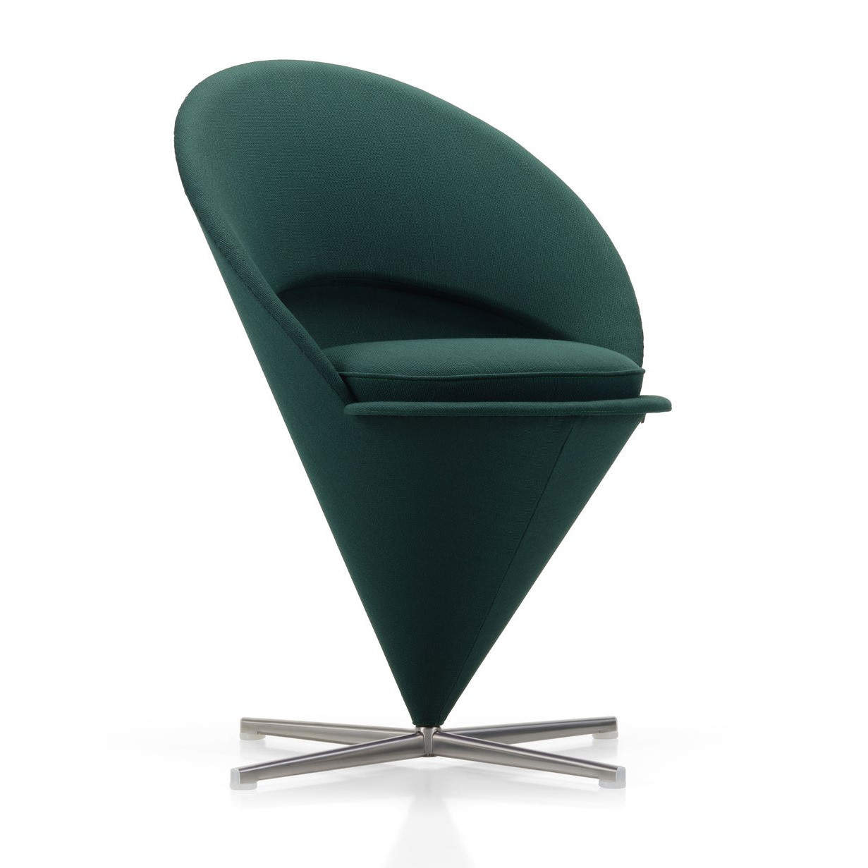 Designové křeslo z kolekceCone švýcarská značkaVitra. NavrhlVerner Pan{131}}vroku 1958 – designová ikona, která změnila způsob, jakým přemýšlíme o formě sedadla. Křeslo inspirované geometrickým tvarem kužele má podobu obráceného trychtýře namontovaného na elegantní otočné základně znerezové oceli se saténovým povrchem.